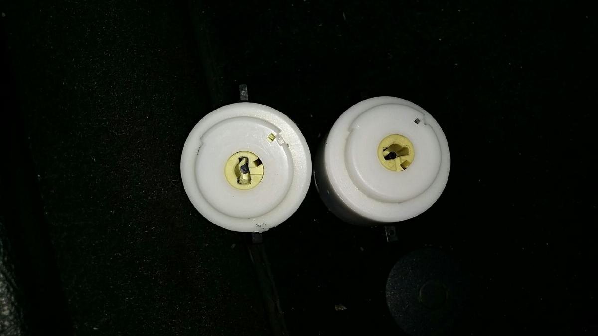 A gauche le contacteur d'origine et à droite le neuf (les deux dans la même position bien sûr) La partie métallique en question. -