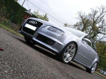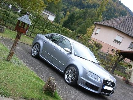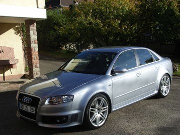 Bonjour à tous. Voilà, çà fait 1 semaine que je roule en RS4 B7. Et quel bonheur :bigsmile: :bigsmile: Je passe donc d'un TT TDI à une "familale" de chasse: le changement est brutal mais vraiment bon. Au départ pourtant, j'étais parti pour prendre 1 TTS S Tronic neuf. Mais j'avais eu l'opportunité d'en essayer 1 d'occas et çà ne m'avait pas suffisament emballé. Du coup, je ne savais plus quoi faire, plus quoi acheter. J'ai mis 1 bon mois à éplucher tous les mags de sport auto, à voir les annonces sur le net. Et au fur et à mesure, l'idée de prendre 1 RS4 se rapprochait. Quand j'ai vu que pour le même budget qu'un TTS neuf je pouvais prendre 1 RS4 avec pas trop de bornes et de moins de 3 ans, là je n'ai plus vraiment hésité. Il suffisait de trouver après encore la bonne voiture avec le bon vendeur. Comme toutes mes Audi étaient noires jusqu'à présent, j'étais donc parti sur du noir. J'en ai trouvé une du côté de Clermont en full black avec jantes RS4 titane (comme sur mon TT). Elle n'avait que 16000 km. Je m'étais mis d'accord avec le vendeur (enfin c'était soit disant le beauf au vendeur), mais depuis que je lui avait demandé la copie de la carte grise, plus de nouvelles, même après plusieurs relances par tél, sms, e-mail. Halluciant, une vraie arnaque :colere: Je ne me suis pas découragé. En plus, j'avais déjà commencé à entreprendre les démarches avec mon banquier. Je suis alors tombé sur une annonce pour une RS4 gris Avus dont le vendeur n'habitait pas trop loin. J'y suis allé un soir après le boulot histoire de voir ce que çà donne le gris Avus en vrai, vérifier l'état de la voiture, et faire un essai. Une fois arrivé devant cette voiture, là j'ai tout de suite craqué: ce gris Avus est juste magnifique, bien mieux que sur les photos. Et en plus la voiture était dans un état extraordinaire. Le proprio était un pro de l'entretien :bien: J'ai donc tout de suite fait le chèque de réservation. Voilà pour la petite histoire certes un peu longue. Je ferai un descriptif des équipements et je posterai des photos ce week end si le temps me le permet.