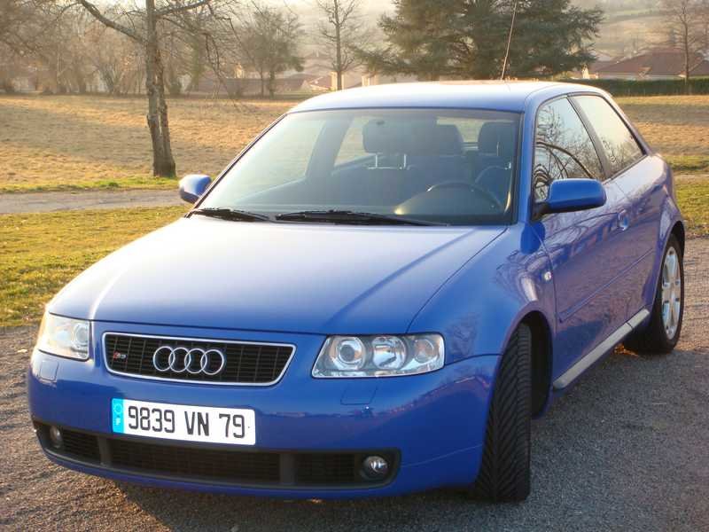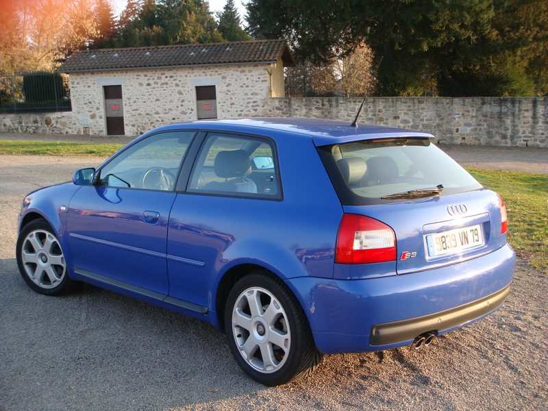 C'est une S3 de 2001 donc evo mais sans option supplémentaire (pas de Bose, toit ouvrant...). Elle est bleu nogaro avec intérieur mi-cuir, mi-alcantara bleu et totalise 88 000 Km.