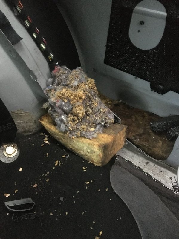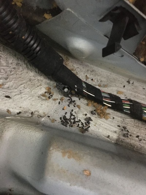Quelques photos du dégât : nid d'un coté et plus bas proximité d'attache ceinture sécurité Cable noir coupé => ressoudé + rétractable et blanc grignoté a réparer