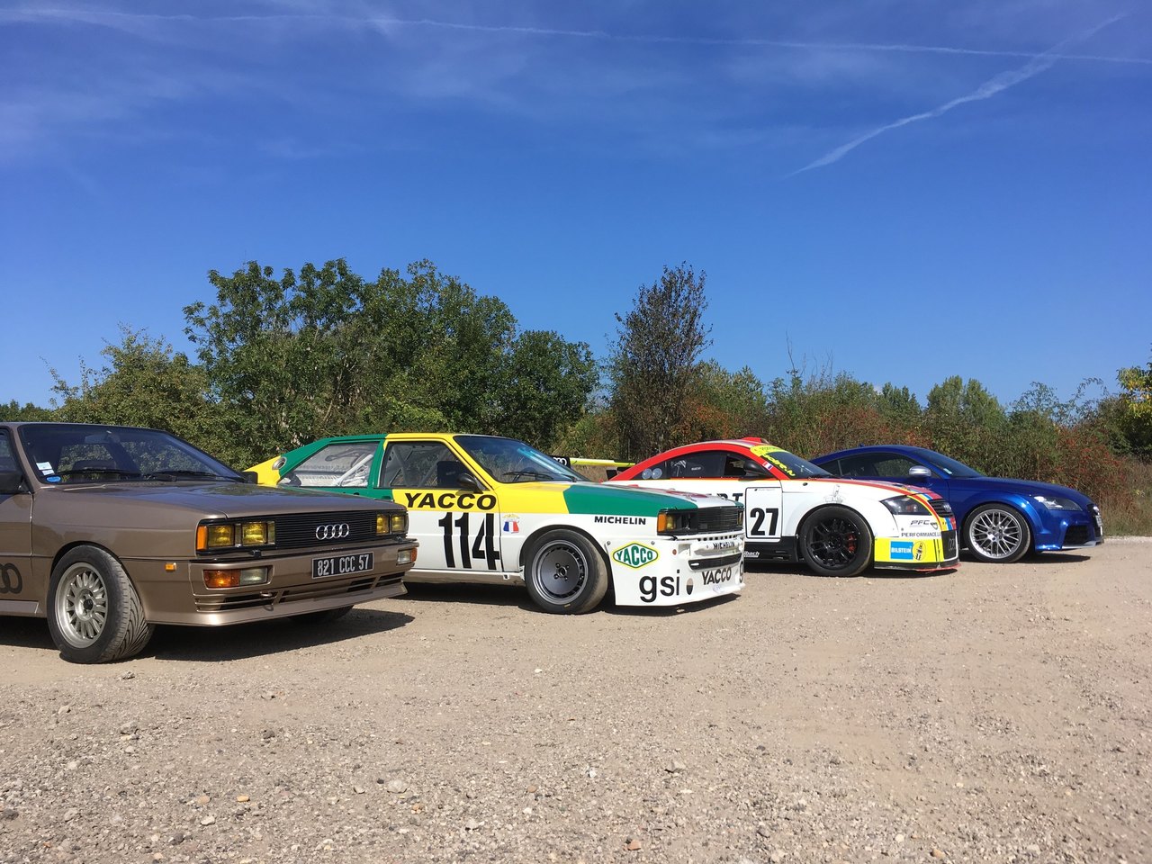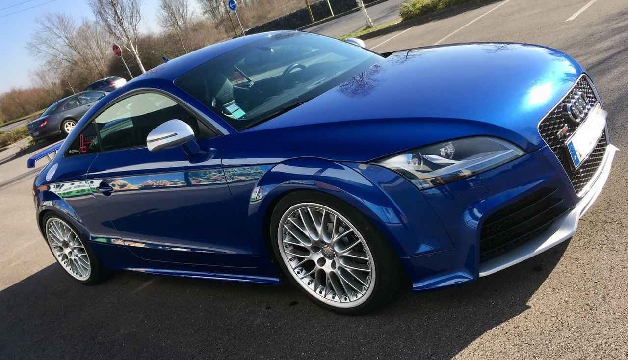 Salut à tous en plus de mes Audi anciennes de courses et autre Urquattro, voici la derniere arrivée dans mes mains Un TTRS 340 ch Bleu sepang pack F1 et alu, boite 6 Meca Nous avons monté un : - kit suspension Bilstein Club sport 2 voies, sur coupelles AV et AR uniball, reglables, homologué TÜV - Kit durites aviation homologues TÜV - Liquide de frein racefluid PFC 665 - Plaquettes AV PFC RACEPADS 08 et AR DS2500 ferodo - Stage 1 bi carto, avec le bouton SPORT by Shiftech Luxembourg Une chouette auto, utilisable au quotidien, et sur piste à haute vitesses ( pas de petits circuits ) @u plaisir Dan -