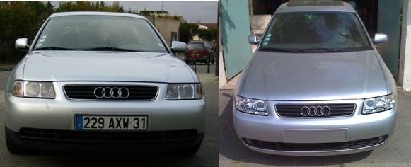 bonjour voici quelques temps que j'ai fini le passage en phase2 sur mon A3 1.8T. (feux + phares avec AB) principalement puis j'ai peint mes spoilers des pare choc et j'ai aussi placé le pommeau de vitesse phase2 car je trouve que le phase1 est HORRIBLE! je sais pas vous mais moi je trouve que ça déchire grave !!!! lol je l'aime ma titine =) semaine prochaine vitre teintées avec un dump valve et prochainement reprog ou jantes RS6 en 17 voilou voilou bye bye les amissssss (si quelqu'un veut des renseignements au sujet de la modif no pb j'ai toutes les références et tout les prix de toutes les pièces que j'ai acheté je parle principalement pour les raccords des phares etc) -