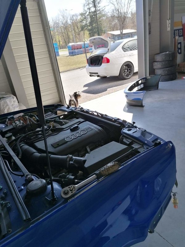On profite du confinement pour continuer , ça fait quelques années qu'elle n'a pas bougé. Changement des ailes et du pare chocs , bientôt la peinture -