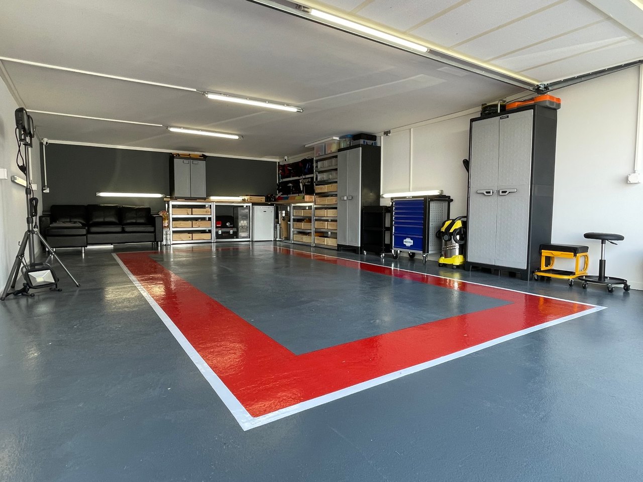 C'est de la résine... la peinture ne tiendrait pas dans le temps... Du coup j'ai opté pour la résine sur un sol complètement remis à niveau et poncé ! (Cf photo ci-dessous..) J'ai un album Flickr qui détail un peut les travaux réalisés dans ce BOX que tu trouve ici en cliquant sur ce lien: https://flic.kr/s/aHsmS5XmeA -