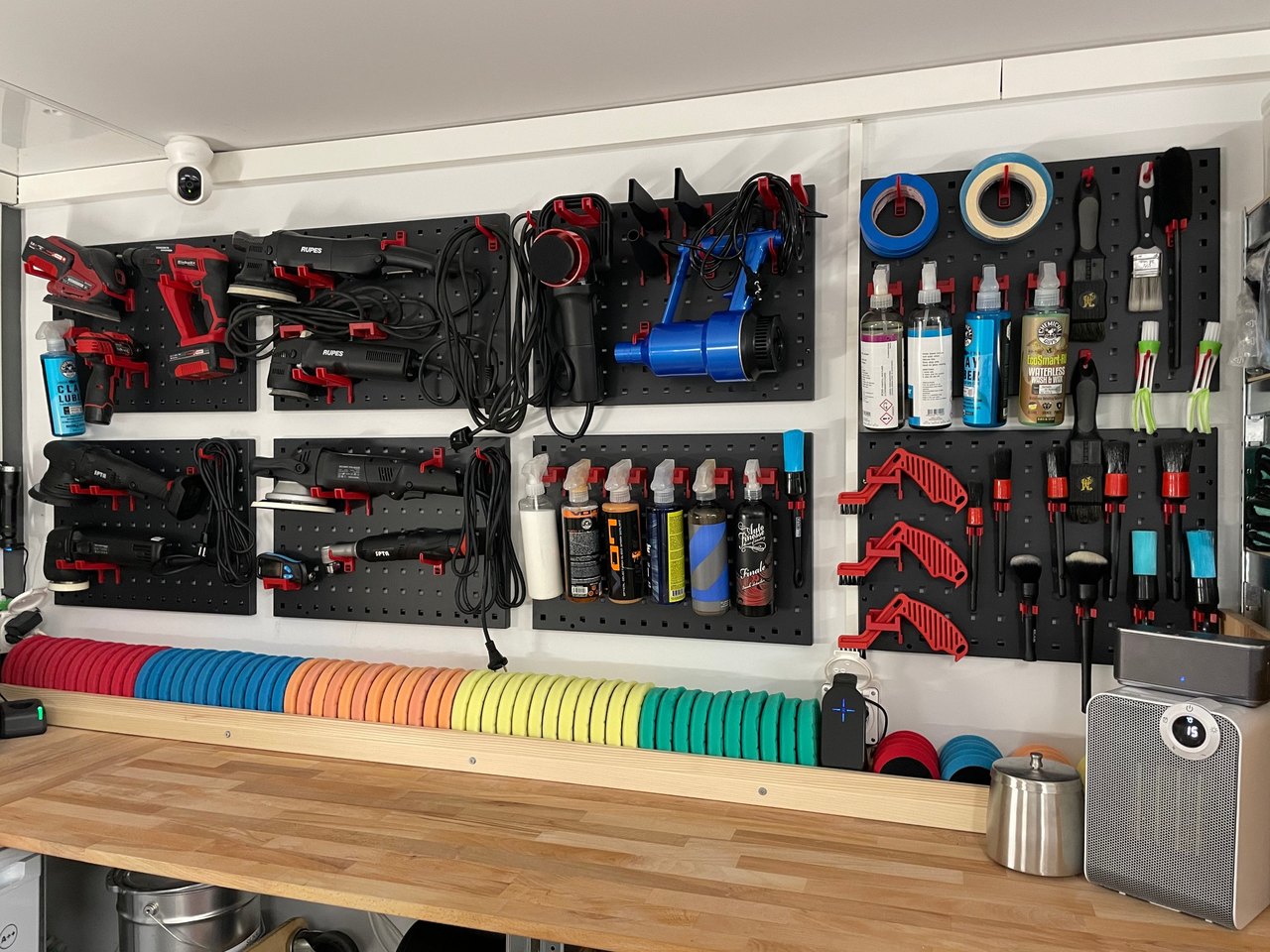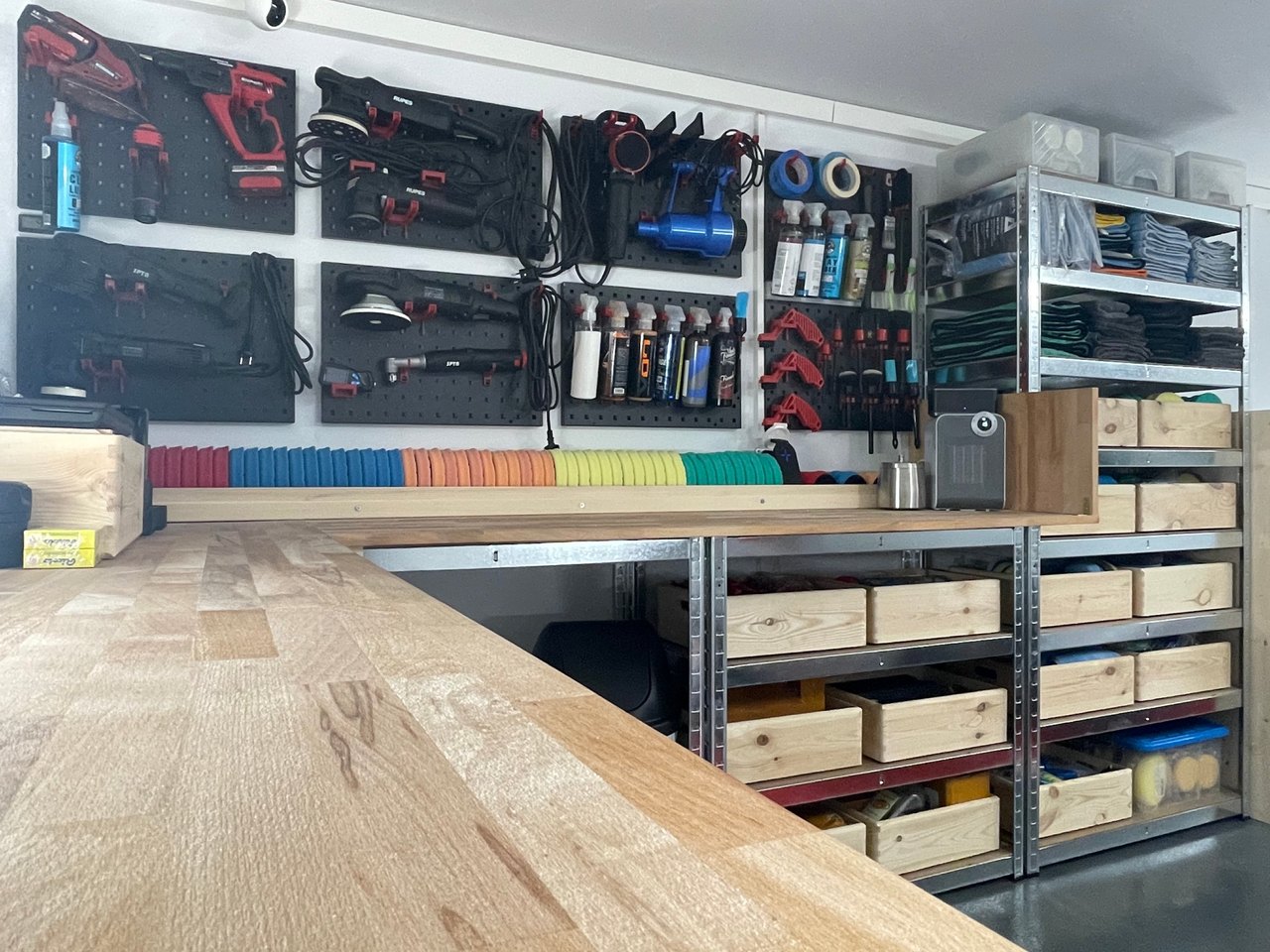 Merci pour les encouragements... Pour ce qui est des caisses en bois, je me les suis procurés à Hornbach. Ici en Suisse, cela correspond au magasin Leroy Merlin en France je crois... Nettoyer ? Pourquoi faire ? C'est censé être un local d'entretien cosmétique auto (voir moto), et non pas un local mécanique comme n'importe quel autre garage de dépannage du coin. L'ensemble de ces outils seront utilisés régulièrement, du coup je les entretiens à chaque utilisation. Donc pas besoin de nettoyer quoique se soit, qu'ils soient visibles ou non looool Ce local et tout ce qui le compose est clean de chez clean... et je ferais le nécessaire pour qu'il en soit ainsi quotidiennement. D'ailleurs, je n'aurais pas trop de mal pour ça, puisque je suis un peut maniaque sur les bords ! -