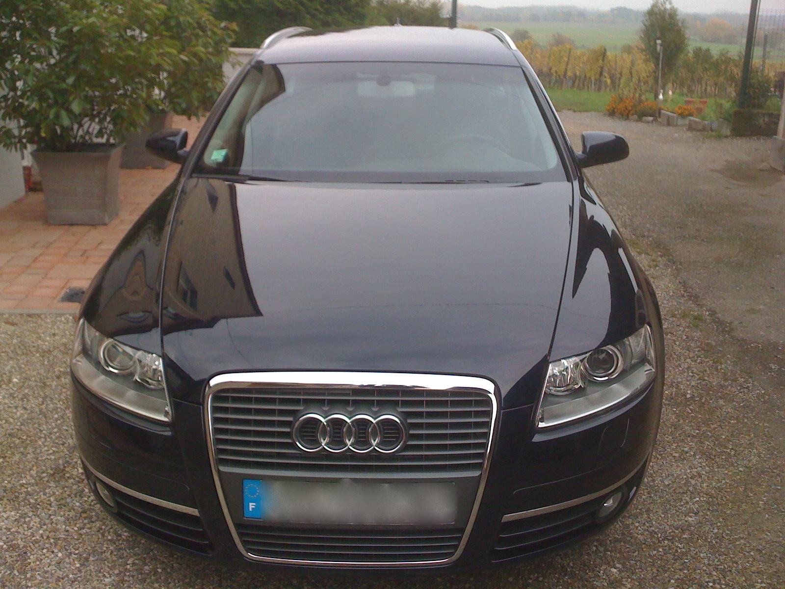 Bonsoir à tous, je suis très content de vous rejoindre, Je viens d'acheter une A6 avant ambition 2,7 tdi de 2006 avec 44000 km Parmi les options(ou équipements de série je ne suis pas certain): phares xénon téléphone gps couleur+chargeur alcantara gris foncé ...je crois que c'est tout.... ...par contre les 16' sont provisoires c'est certain(l'ancien propriétaire m'a dit que c'était une option minorante...quel drôle de choix) elle arrive en remplacement d'une Golf V GTI qui est en vente...si jamais... elle est comme neuve (2007,22000km,cuir,gps,to,téléphone,pack vision,attelage,ipod:2300€). Merci d'avance pour vos précieux renseignements. Allez, place aux photos(d'autres suivront quand elle sera bichonnée))