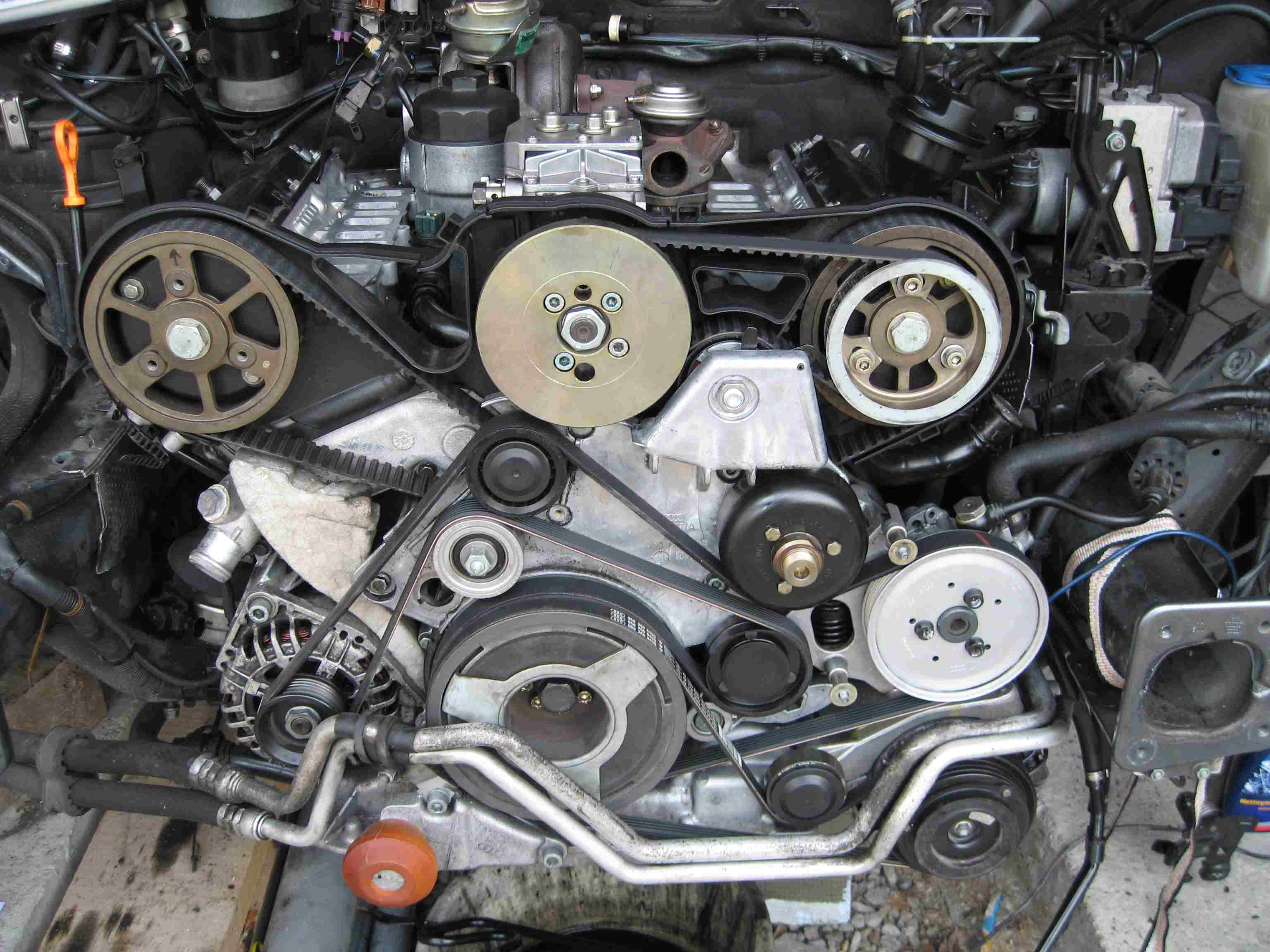 2. Probleme trouvé ! Heureusement que j ai pu compter sur l'aide de tous les gens du forum :bigsmile: Enfin, ca pourra certainement en aider d autres ! il s'agit de la poulie damper, dont l'interieur etait broyé. C est la poulie en bout de vilebrequin, qui entraine la courroie d'accessoires, et la courroie de clim. Elle contient un systeme d'amortissement de choc, a base de silent bloc. Prevue par exemple pour amortir les chocs dus au demarrage du compresseur de clim. Mais lorsque mon compresseur s'est bloqué, et que la courroie à patinée, elle n'a pas résistée au choc extreme et violent. Le systeme d'amortissement à cassé. C'est traite, ca ne se voit pas de l'exterieur... Exterieurement, on voit toujours la poulie tourner normalement. Il faut la démonter pour se rendre compte de la casse. Et ca vaut 330 euros chez Audi, on la trouve autour de 200 sur les sites de pieces. :coucou: