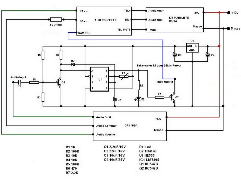 Bonne nouvelle, J'ai éliminé mon problème de perturbation de mon kit main libre lors du branchement de l'alim 12v du gps !!! J'ai intercallé une résistance entre le commun de la sortie son du gsp, et l'entrée NAV- de l'autoradio (56 R). Tout fonctionne normallement maintenant : téléphone sur autoradio avec mute total lors d'un appel, et gps sur autoradio avec mute partiel. 100% confort, et 100% efficace ! Que du bonheur ! -