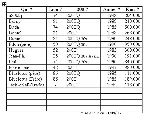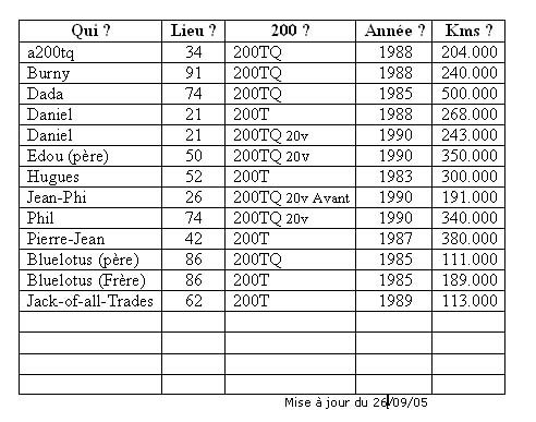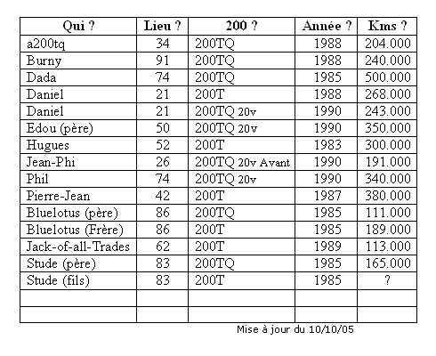 Ca y est ? On a fait le tour ? Il n'y a plus d'autres 200 en service en France ? Alors 13 véhicules identifiés. Heureusement que Daniel en a 2 ! car si 100% de présence au futur rassemblement, cela ferait 13 à table -