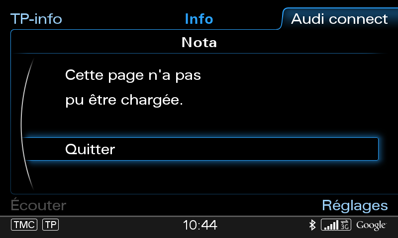 Salut à tous J'ai fais le montage et codage ce jour en utilisant une carte SIM et un téléphone secondaire en point d'accès Wifi afin de voir le rendu avant achat clef 3G.... Bon c''est pas gagné : le routeur semble etre bien reconnu.... Le logo Google a bien "blanchi" de la gauche vers la droite mais l'écran de chargement des données en reste là ... A aucun moment cela ne revient dans la navigation Je ne peux pas activer la licence audi connect et j'ai un message "la page n'a pu etre chargée" pourtant le logo comme indiqué ci dessus à bien blanchi cela me fait dire que de la donnée a bien été téléchargée... PS : je n'ai pas activer le TMC Pro encore mais je ne pense pas que cela soit bloquant ??? Auriez vous des idées ? -