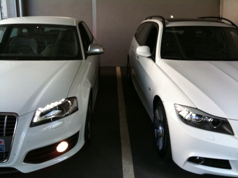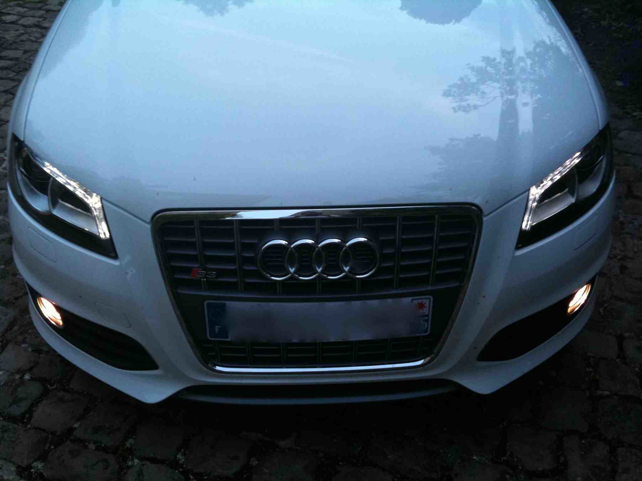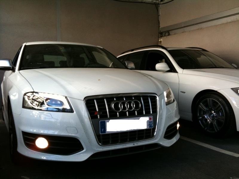 Ouais merci à tous !!! Je suis super content. C'est une bombe ... Stronic: C'est un véritable plus pour cette auto, ça lui améne la souplesse là ou la boite méca la rend violente, ça permet de conduire la voiture tout doux quand on veut. Par exemple la boite passe la 6eme à 50Km/h en ville ... la conso est donc soulagée et le bruit très rauque ! Le feulement à chaque passage de vitesse est mortel ... en effet la boite laisse passer un ptit filet de gaz à chaque passage de rapport. Quand on se fout en mode sport avec les palettes ça devient démoniaque, les rapports passes au dessus de 7000 tr dans un bruit de dingue ... Confort et finition: Bon c'est ma première caisse essence, autant dire que ça n'a rien avoir, vitres fermées aucun bruit ni de moteur, ni d'échappement (en mode tranquillou biensur) Pas un seul bruit parasite dans le véhicule, rien ne craque, rien ne vibre c'est parfait. Les enceintes d'origine sont de très bonne facture, le son est bien plein en grave et très précis en aigue ! (jai changé l'autoradio pour mettre un pioneer avic F700bt) Les sièges cuirs et alcantara, un vrai bonheur, pas trop baquets (je suis très large d'épaules et par conséquent ça m'aide bcp ...) L'alcantara diminue la chaleur ... le cuir c'est trop hot en été. La finition est parfaite, les assemblages sont comme d'hab chez audi, sans aucun reproche possible, la boite stronic est magnifique (levier petit et rond et court) Moteur et comportement: Hum pas grand chose à dire, incroyable, puissant, présent, économe, violent, rageur, discret ... Enfin ce moteur est tout à la fois et va parfaitement à l'A3. Le comportement est là encore parfait, que ce soit sur route mouillée ou sur route sèche, en virage, en cote ou en descente impossible de la prendre en défaut (même sur un rond point à "biiiiip"... loool) Esthétique: C'est très subjectif mais tout le monde se retourne, le bruit rauque, la peinture blanche et les magnifiques diodes n'y sont pas pour rien ... Moi je suis inlove vous l'aurez compris ... Je vous conseil à tous l'achat d'un coyote qui me semble obligatoire avec un bolide du genre Bref voiture magique ... REPORTAGE PHOTO COMPLET CE WEEK END !!! -