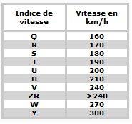 Hello Le 143 TDI est donné à 190km/h max, l'indice minimum à utiliser est le T => aucun problème pour l'indice V Le 170 TDI => 204 km/h => Indice H minimum Le 240 TDI => 225 km/h => Indice V minimum Cheers -
