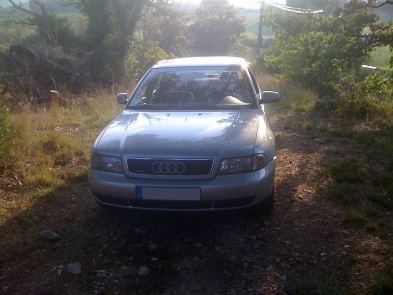 Salut à tous ! Je me prénommine Benoît, j 'ai 27 ans,j'habite à venelles dans le 13, féru de haute technologie highteu teckeu, je cherche une blonde a forteu .... ? Ah, on me dit dans l'oreillette que je suis pas sur le bon forum ^^ Bon les amis soyons sérieux, passionné d'automobile et d'audi comme tout le monde ici ou presque, je vais vous présenter ma voiture. C'est une a4 B5 de 97 2.8 quattro pack clim. Je l'ai depuis 2001 et elle a, à ce jour, 199800 kms. Il manque plusieurs Zoptions quand même donc le chassis sport, le cuir , le T.O. LES PHOTOS!! LES PHOTOS !!! ok ok cher public ne vous impatientez pas Voila j'espère que ca vous a plu. A bientôt Ben