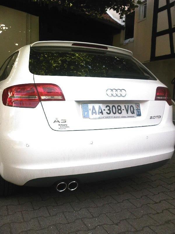 5. Bonjour, je me présente, je m'apelle Pierre j'ai 22 ans et j'habite un petit village en Alsace du nord. Après 4 mois d'attente (c'est long) mon rêve est devenu réalité. C'est une A3 Sportback 2.0 TDI 170 Stronic Sline Couleur:Blanc Ibis avec sellerie semi cuir avec surpiqure argent Options: Gps Plus Radar de recul Rétroviseurs extérieurs dégivrants (de série sur ma Golf IV) Préparation pour clé USB dans la boite à gants Alors la voici :
