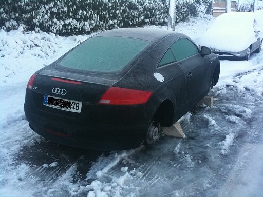 Bonjour à tous, que de galères depuis ce vol de roues.... Des relances tous les jours auprès de l'expert et du garage, un véhiucle de prêt qui traine à venir, 8 jours pour que l'expert valide!! Petits conseils pour vous (peut-être que vous les savez déjà pour la plupart, mais c'est toujours bon d'y penser): - Les roues ne sont pas forcément assurées en cas de vols. Pour certaines assurance, il s'agit d'une option, à vérifier donc... - Quand vous achetez un véhicule avec des jantes différentes en option, ou que vous les ajoutez par la suite, faites bien attention!! Dans mon cas, TT SLINE, il voulait me rembourser sur la base des 18 pouces et non pas sur du 19. Heuresement j'avais toutes les factures, photos et j'vais fait mon achat directement chez Audi. Dans le cas contraire, il considère cela comme un accessoir, et la prise en compte est donc minimale. Par exemple, vous achetez un TT neuve avec du 17 pouces, vous changez les jantes en 19 quelques mois après => en cas de vol, vous serez remboursé sur du 17... A moins de prévenir l'assurance avec un recommandé, mais le tarif ne sera peut-être pas le même du coût... Je récupère peut-être ma titine cet aprèm, mais rien n'est moins sûr... D'ici bonne fêtes à tous! Arno -
