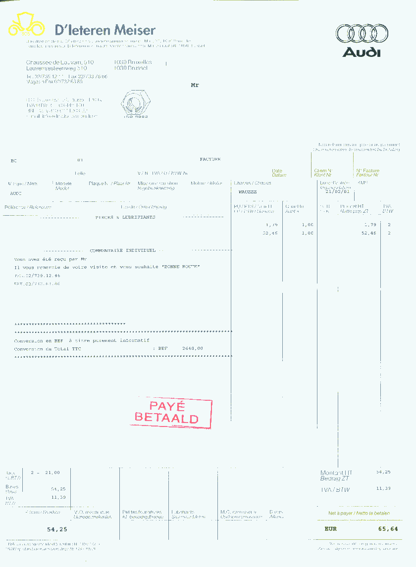 Bonjour, tout le monde peut être distrait. Je n'ai rien à vendre. Même en tant que particulier, vous pouvez obtenir votre documentation officielle Audi (entretien, dépannage, etc...) en français >>>ICI<<<. Vous payez uniquement pour les pages de documentation choisies (que vous pouvez consulter sur le site autant de fois que vous le désirez) et pouvez accéder aus mises à jour gratuitement pendant un an. Vous en imprimez le nombre d'exemplaires désirés, vous vous engagez simplement à ne les diffuser à autrui par aucun moyen. Bonne route! -