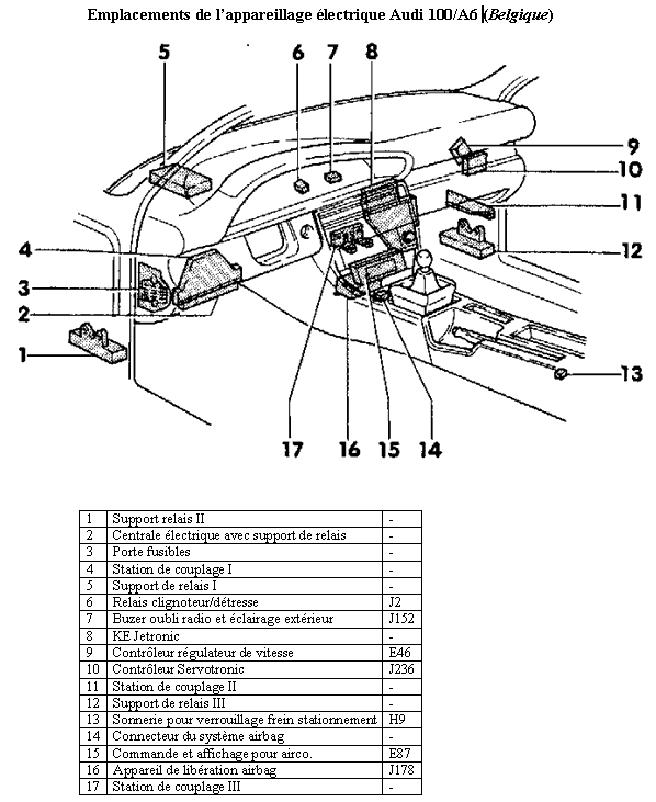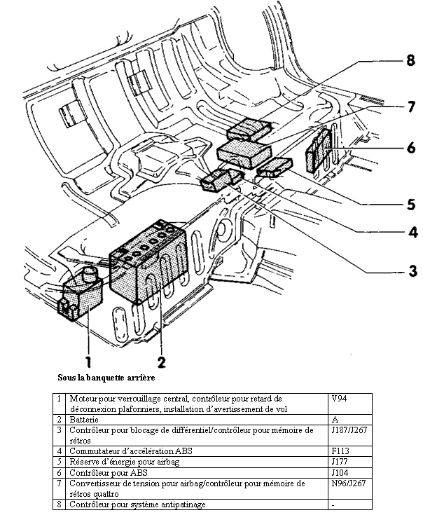 Bonjour, voici l'emplacement des équipements électriques des Audi 100/A6 (c4). Le boîtier de gestion du moteur que vous cherchez se trouve en position 8 sur le premier dessin. Bonne route! [attachmentid=12397][attachmentid=12398] -