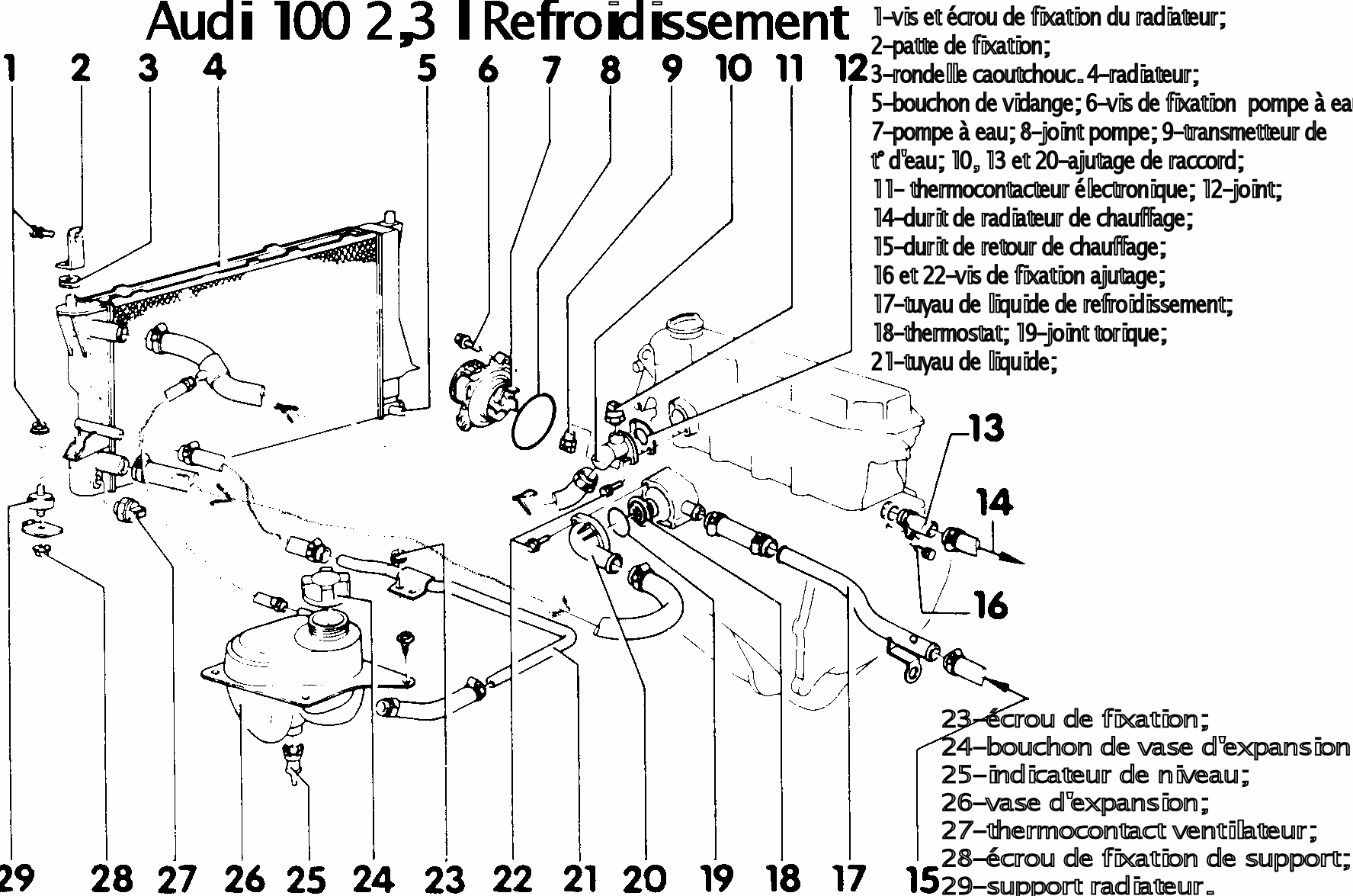 Bonjour, voici la vue du circuit de refroidissement Audi 100 2,3l.Il n'y a pas de vis de purge. [attachmentid=1302] [attachmentid=1303] -
