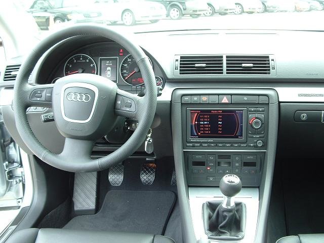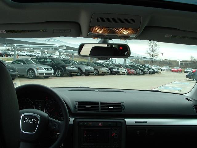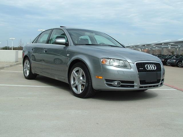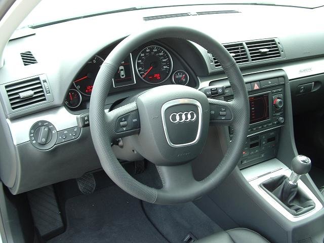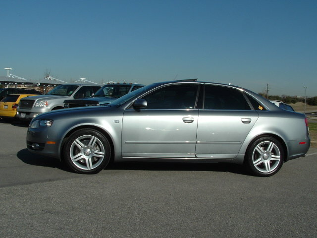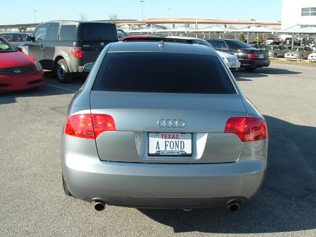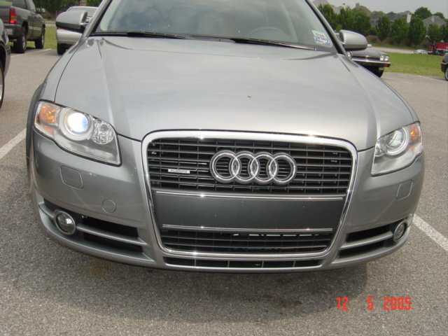 Salut tout le monde! J'ai honte, ca fait presque 3 mois que j'ai ma belle, et je ne vous l'ai pas encore presentee. Alors voila; c'est une A4 2.0T FSI Quattro BM6. Modele U.S. Gris Quartz avec interior noir. Options: -Premium: Toit ouvrant electrique, siege passager electrique avec support lombaire electrique, oridnateur de bord couleur, cuir, Homelink -Pack Xenon: Phares Bi-xenon adaptifs, siege conducteur memorise, retroviseurs automatiques jour/ nuit avec boussole integree, retroviseurs exterieurs rabatables electriquement, phares automatiques, essuis glace automatique -Pack Bose: Bose + Radio Satellite (dispo sur le marche Ricain; c'est comme le cable de la tele, mais pour la radio) -Pack Sport: Suspensions sport et jantes 17 pouces doubles bras. -DVD Nav+ -Laves Phares -Pare soleil electrique arriere et manuel pour les portes arrieres. (je crois que c'est tout.) Ah oui aussi vitres teintees noir!!!!! -