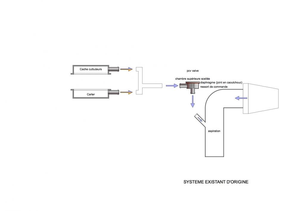 Bonjour Gilles, plus qu'une photo........un tuto. A la base, nous avons le schéma n°1... Le but est d'arriver au schéma n°2.... Voici la baie moteur du TT 8N (version 225 cv) C'est ici que ça se passe (on voit le "PUK" avec sa durite à 3 branchements). 1 branchement (arrivé) depuis le bas moteur 1 branchement (arrivé) depuis le haut moteur 1 branchement (sortie) vers le "PUK", vers la durite d'admission. (voir schéma n°1) Avant tout, préparer le matériel attention compter 3 bonnes heures (avec des moments de détente pour se calmer....) déposer le système existant (faire des photos pour pouvoir reposer le cas échéant) Voici le catch can de 42 Draft Design Entrée en bas, sortie en haut.............(pour le TT 225, l'inverse serait top)........ J'ai réglé avec un seul cran de décalage (il y a 6 possibilités me semble t'il). Il faut.............plein de trucs bizarre en silicone (T, L, + raccords,colliers,......) Diamètre int. environ 20 mm, colliers 30 mm, raccords diam: 20 mm environ. Pour les raccords, j'aime bien les éléments en plastique (rayon arrosage des magasins de bricolage). Il faut arriver à faire des pièces comme ça........ -