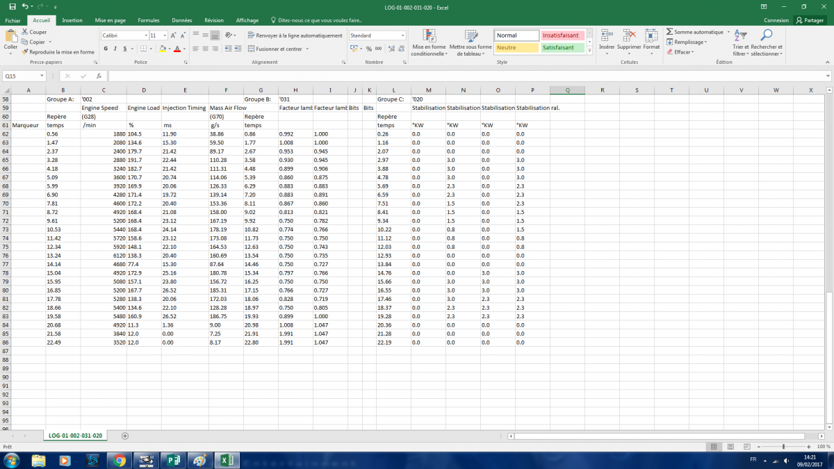 12. Donc en 93 au ralenti : T/min entre 720 et 760 Engine load entre 21,6 et 24,1% Stab ralenti à froid -2°kw ,moteur chaud -3°kw