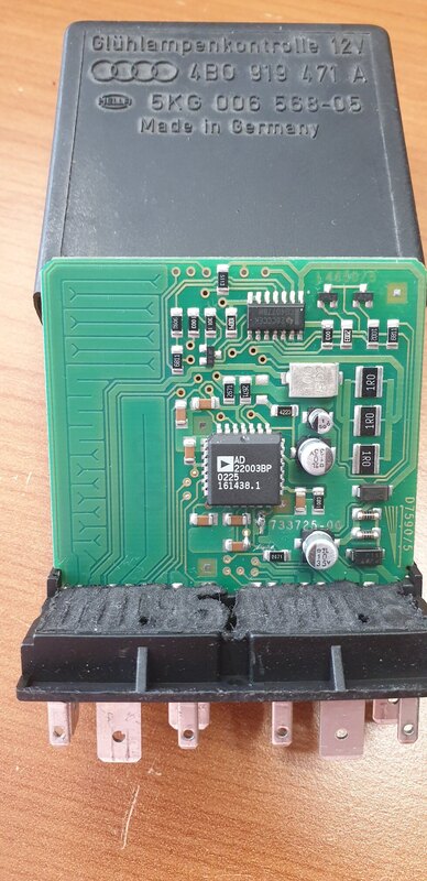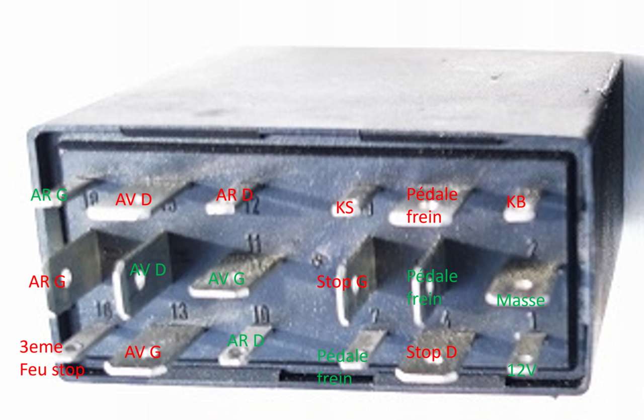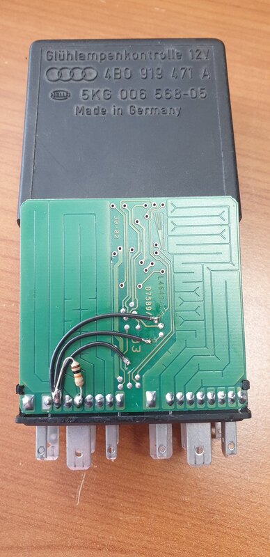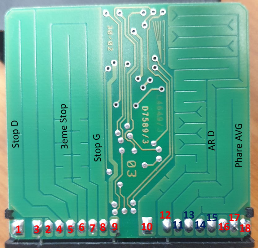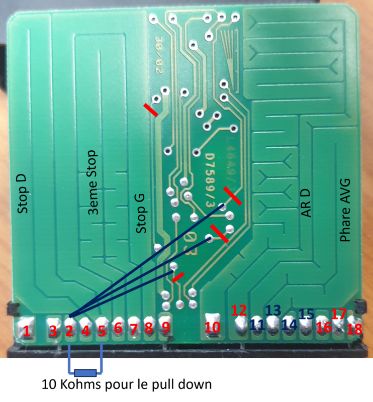 Bonjour à tous, Un post pour partager avec ceux qui possèdent encore une "ancienne" (2004 et avant) et qui souhaitent changer les blocs feux arrières d'origine (avec des ampoules à filament) par des blocs avec leds sans avoir des voyants au tableau de bord en mode sapin de noël et des dysfonctionnements d'autres calculateurs... J'ai monté ces modèles (conservant le style d'origine) à la suite de la casse d'un bloc d'origine puisque la pièce n'est plus disponible chez AUDI : La solution basique proposée par les vendeurs est de mettre des résistances de puissances en parallèle des leds pour simuler la consommation d'énergie d'une ampoule à filament. Les vendeurs vous précisent bien au préalable que ça va chauffer donc attention ! En effet les 90°c sont franchis en moins d'une minute. N'étant pas rassuré à l'idée de mettre des "radiateurs" dans mon coffre, j'ai cherché le module gérant le monitoring des lampes et surtout comment éviter la remontée d'erreur. Avant d'aller plus loin, je précise que le fait d'ajouter des résistances en parallèle ou de réaliser la modification que je propose fait perdre le monitoring des lampes. Le module n'est plus en mesure de détecter une lampe HS ! Sur mon A6 C5, il s'agit du module "393" ou "J123" ref 4B0 319 471 A se trouvant avec les relais derrière la boite à fusibles à gauche du tableau de bord lorsque la porte conducteur est ouverte. Il est visible et accessible sans démontage en ouvrant la trappe latérale. Il suffit de tirer dessus pour le récupérer : Une fois la bête ouverte, l'électronique est visible : Le schéma électrique du raccordement du J123 qui monitore les feux de position avant ainsi que la pédale de frein + les feux de position arrières + feux de stop droite/gauche/central : Pour bien comprendre le fonctionnement avant de le modifier voici quelques infos techniques : Ce module reçoit les différentes commandes d'éclairage qui le traversent. Il s'agit tout simplement d'un comparateur de tension monitorant la chute de tension (dans ce cas 1,75 mV) traversant les larges pistes visibles. Le schéma du comparateur, "RS" correspondant aux larges pistes visibles sur la carte : Le fait de remplacer les ampoules à filaments par des leds fait que la consommation de courant devient très faible (de 2A à 0,2A dans mon cas avec un bandeau de led pour les feux stop et position). Du coup la chute de tensions provoquée par les pistes devient ridicule, les 1,75mV ne sont pas atteint et le comparateur interprète cela comme une ampoule défaillante. Il faut donc "tromper" le comparateur pour qu'il voit à nouveau la différence de tension aux bornes des comparateurs. Pour cela il va être nécessaire de couper les pistes arrivant au "+" du comparateur et de relier les entrées "+" du comparateur à la masse (ne surtout pas raccorder l'autres cotés des pistes à la masse, court circuit assuré !!!!). Le bornage du module correspondant aux schémas électrique est le suivant (en vert les signaux d'entrée et en rouge les sorties) : Ce qui donne ça coté électronique : J'ai acheté un module d'occasion (quelques dizaines d'Euros sur des sites de pièces d'occasions) pour faire les modifications qui suivent et conservé le module d'origine au cas où... Il faut donc couper les pistes au niveau des traits rouges (x5) sur une largeur de 1mm et les raccorder au niveau des traits bleus (x5) : La résistance de 10 Kohms est obligatoire pour permettre le "pull down" du circuit électrique et pour éviter l'erreur "00741 Brake Pedal Monitoring", sans quoi les différents calculateurs voient la pédale de frein faussement active (visible via VCDS dans le canal 6 du calculateur moteur). Dans mon cas impossible d'engager le régulateur de vitesse, boite Tiptronic sans sécurité pour quitter le mode P et voyant de préchauffage qui clignote non stop... Ce qui donne ça une fois modifié : N'hésitez pas à me contacter si besoin de plus d'info ! Je ferai évoluer ce post s'il y a des oublis.