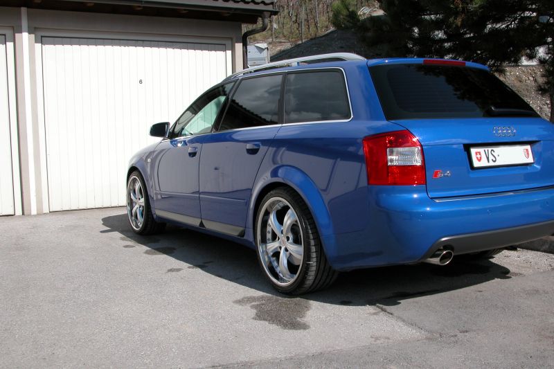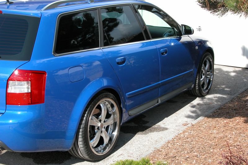 19. Ben voilà le ptit lapin de pâques à été gentil avec mon estomac, il m'a ramené des jantes au lieu de chocolats ... Des vitres teintées par la même occasion.. c'est pour le petit qui n'aime pas le soleil en roulant Pour le choix de jantes, ça a pas été facile facile ... ça fait au moins 1 an que je cherche mais mis à part les RS6 (trop vues mais toujours très belles) et les innaccessibles MTM ou Sportec (trop chères !!!) j'ai mis la main sur un jeux de jantes d'occasion (!) pas trop chères et en assez bon état à l'avant : 8x19 en 225/35 (640mm de diamètre) à l'arrière : 9x19 en 265/30 (641mm de diamètre) Donc seulement 1mm de différence en diamètre, Messieurs Torsen et Quattro sont contents comme ça