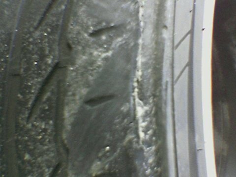 12. Donc en gros trois problèmes : P1 : Usure des extérieurs du train avant ? P2 : Usure plus vers l'extérieur de l'arrière ? P3 : Bord des pavés qui "rebique" ? Pour mon avis ou mes expériences : p1 : Sous gonflage sans aucun doute ... les 2 bords sont usé par rapport au centre .. il doit manquer 200gr min par pneu .. Pour ma part sur la S4 je mets 2,9 à l'avant et 2.6 à l'arrière --> les conti d'origine avaient une usure tout à fait normale lorsque je les ai changés ... p2 : je suppose un problème de géométrie .. les miens étaient plus usés à l'intérieur, ce qui est plus ou moins normal selon le style de conduite, lorsque l'on "bourre", l'arrière se tasse et les pneus prennent un angle vertical en biais, ce qui expliquerait l'usure intérieure mais pas extérieure ... à contrôler ... p3 : typiquement un pneu pas adapté à la voiture .. la gomme est trop "molle" pour le poids du véhicule .. le S4 est (trop) lourd et lorsque tu attaques, tes pneus montent en température et si la gomme est trop tendre, elle s'use de cette manière, tout en "escalier" ... j'ai eu ce prob avec le S3 avant et des pzero ... une usure en escalier peu aussi provenir (souvent) par des amortisseur fatigués ou trop mous ... Et là un petit bonus, 2 photos d'un pneu avant d'un rs4 qui s'était pris un trottoir et que le proprio n'avait pas jugé bon de faire contrôler sa géométrie après ... j'ai eu très peur lorsque j'ai changé les pneus sur son véhicule ... le pneus était complètement mangé à l'intérieur .. et donc l'usure invisible depuis l'extérieur ...