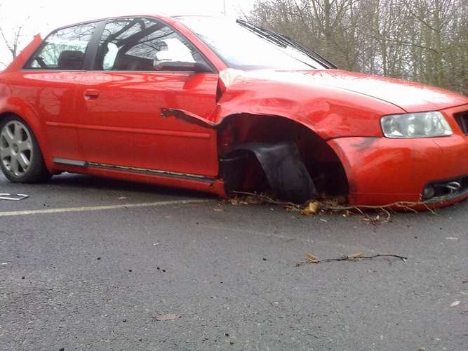 Voici la fin de ma belle histoir d'amour , suite a une volvo qui ma couper ma priorité !!!!! :furious: c'etait une s3 année 2001 , 209 chevaux de couleur rouge totalisant 123.000klm lors de l'accident voici quelque photo