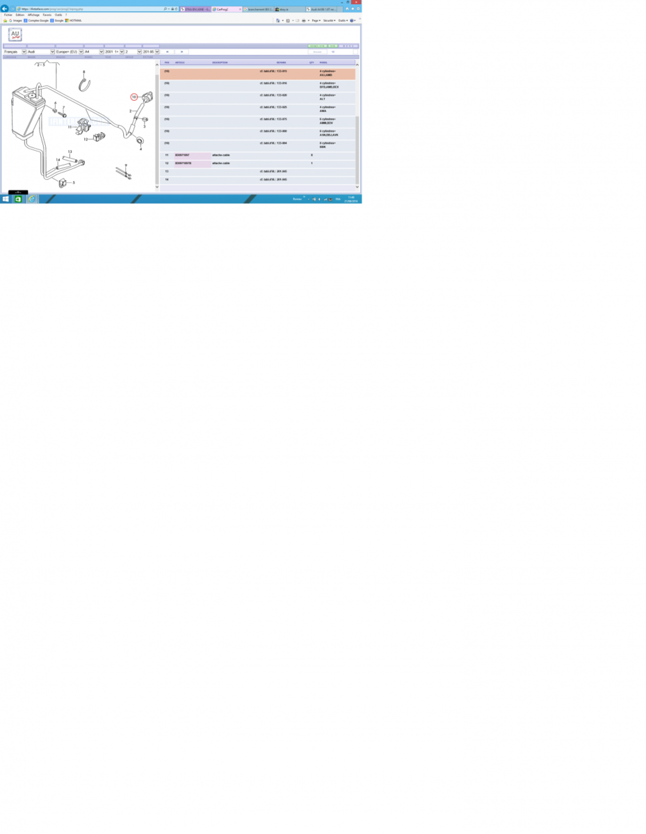 5. Merci Sebet500 et Sm18 pour vos réponses. La voiture est chez Audi, je passe tout à l'heure leur expliquer le problème et je vous tiens informé de la suite. Oui je pense que le moteur est noyé car en shuntant, l'essence partait par l'electrovanne 10. Concernant ce tuyau aérateur, c'est donc normal qu'il soit raccordé à nulle part? En tout cas ceci n'explique pas pourquoi de l'essence arrive via le tube 2, il ne devrait y avoir que des vapeurs d'essences. Pour te répondre Sebet500, le réservoir à charbon actif se trouve dans l'aile avant droite, il faut démonter le passage de roue en plastique pour y accéder. Sinon pas de réservoir en surpression. Par contre je ne savais pas qu'une bougie imbibée d'essence était H.S. Je vous tiens au jus!