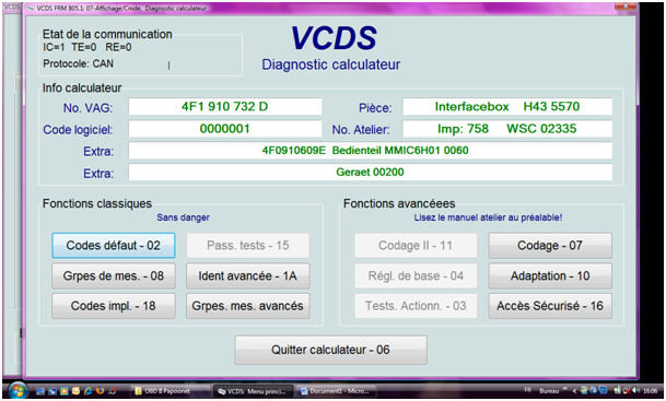 Venant de recevoir mon interface VAG Hex+Can, je me lance dans la modification qui à motivé mon achat (en partie):