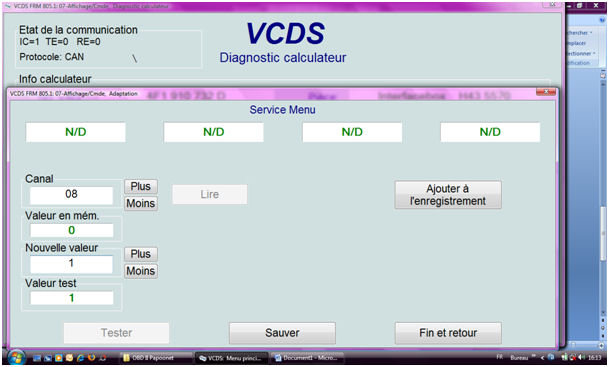 Calculateur 7, Adaptation, Canal 8, mettre la valeur 1 à la place de 0.