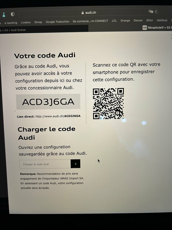 Et pour finir car la faudrait que j'aille au Dodo, levé à 5h ma config. sera celle-là, à peu de chose près Au cas ou cela intéressent certains vous pouvez toujours faire mumuse en la configurant sur Audi.ch, ça marche toujours alors qu'elle n'est plus commandable ici non plus. Je pense que j'aurais une des dernière mouture en principe 2024, il était temps que je passe le pas ! cette voiture va probablement devenir un collector en faite j'y connais rien mais tout me laisse y penser.....brefffffffff dodooo now ! RS_3_Sportback-AQ8ST101_Ma config du 17.10.pdf