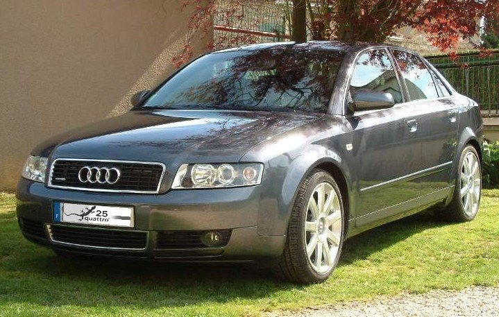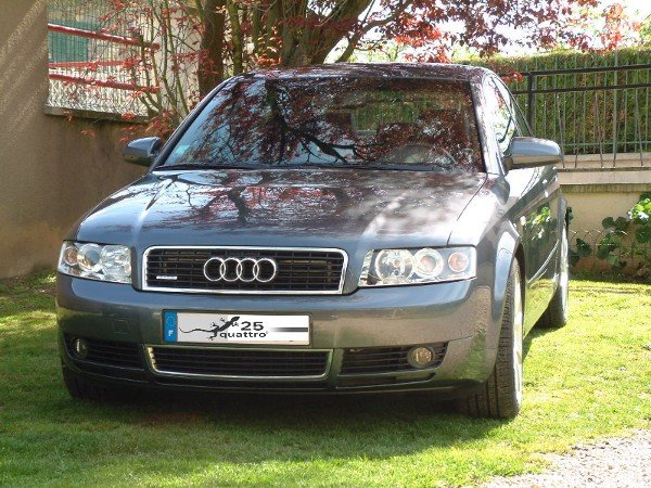 - membre : Grmax - année de fabrication : 2003 - voiture achetée neuve / d'occasion : Occasion - modèle (A2, A3old, A3évo, A3new, S4, S4new, S3, S3évo,... ) : A4 (2) - moteur (cylindrée et puissance): V6 2.5 TDI 180 - préparation moteur (nom du préparateur / puissance obtenue) : non - berline / avant / cabrio,road : berline - version (ambiente, ambition, pack plus,...) : S-line - boîte manuelle / automatique / DSG : auto (tiptronic) - traction / quattro : Quattro - couleur extérieure : Gris dauphin - couleur intérieure : Noir - finition intérieure (tissu, cuir, cuir/alcantara,...): Cuir/Tissu speed - jantes (taille / dénomination): RS9, 18" - pneus (fabricant / modèle): Pirelli P Zero Rosso (235-40 ZR 18) - châssis modifié : Non - freins modifiés : Non - options / divers : pack s-line, supp ident, . 133771[/snapback]