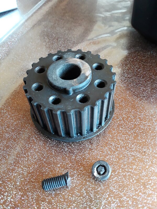 Heeeeeey bin !!! Une bonne partie de la soiree d'hier et tout la journée jusqu'à maintenant ( 16h30 ) a arquiner pour sortir cette salopperie d'olive de clef allen ! Voilà la bitch !!! Je crois que j'ai tout essayé.... brucelles, tournevis, soudage de pointeau, percage ( mon foret au cobalt sert maintenant pour couper le beurre mou ) et j'ai même niqué un burin ( bin oui sur des vis cémentées, le pov burin s'est demandé ce qui lui arrivait ).... J'avais même sorti le chalumeau oxy-acetylene Mais j'ai eu pitié de mon joint de villo qui n'est deja pas bien vaillant... Finalement j'ai coupé ma courroie de distri pour sortir le support alu des galets de la courroir d'accessoire et j'ai dévissé la vis du vilo qui tient la poulie crantee et la poulie accessoire.... Le tout est venu sans soucis et j'ai achevé la vis BTR à la dremel..... j'ai bouffé 3 disques mais au bout de 20 minutes, j'ai fini par avoir raison de cette vis ! Evidemment je ne pouvais pas couper la vis sur place car le disque de la dremel ne passait pas. C'est la raison pour laquelle il m'a fallu sortir tout le kit de poulies.... Je me demande quand même qui est le taré de chez audi qui a décidé de poser 8 vis en acier dur serrees à un couple de camion, pour entrainer un alternateur et une pompe de direction assistée Et accessoirement un comrpesseur de clim... Voila la vilaine guillotinée hinhinhin: Bon donc maintenant je remet tout ca en place easy.... Mais ma question est: quelqu'un connait il le couple de Mammouth+++ pour serrer la vis du vilo SVP ? Passque au desserrage avec ma clef dyna de 90cm j'ai du forcer comme un ane donc je me doute que le couple de serrage doit etre au moins à 80Nm^^ J'espere pas bcp plus car ma clef va jusqu'à 90Nm !!! Voila les amis Bon je pense que je vais boucler pour aujourd'hui car même si ce truc n'etait pas tres physique, ca ma rincé et j'ai le neurone tout plat Ah aussi: Maintenant il me manque une vis.... Et trouver de la vis en acier cemente de même taille est à mon avis un travail de moine. Par consequent, et pour eviter tout balourd à la rotation du moulin, je ne remettrai pas la vis d'en face^^ 6 vis suffisent amplement pour l'effort nécessaire ( càd juste le maintien de la poulie accessoire sur la poulie crantee puisque tout est claveté.... Egalement, j'ai controlé le calage de mes AAC apres pigeage du vilo... tout est parfait Pour finir, j'ai une toute petite fuite de LDR sur je pense l'axe de la pompe à eau.... c'est curieux qu'ils mettent des joints spi de merde sur les pompes.... Et même si elle travaille en porte-à-faux ( conception 'laugh-my-ass-off' ) les roulement devraient limiter l'usure des joints^^ Cela dit elle a 100K Km donc.... je vais p'tetre en profiter pour la changer.... voila pour aujourd'hui Donc si quelqu'un a le couple de serrage de la vis du vilo ( celle qui est au milieu des 8 vis BTR sur la 1ere photo ) je suis preneur Merciiiiii et aux nouvelles !!!! -