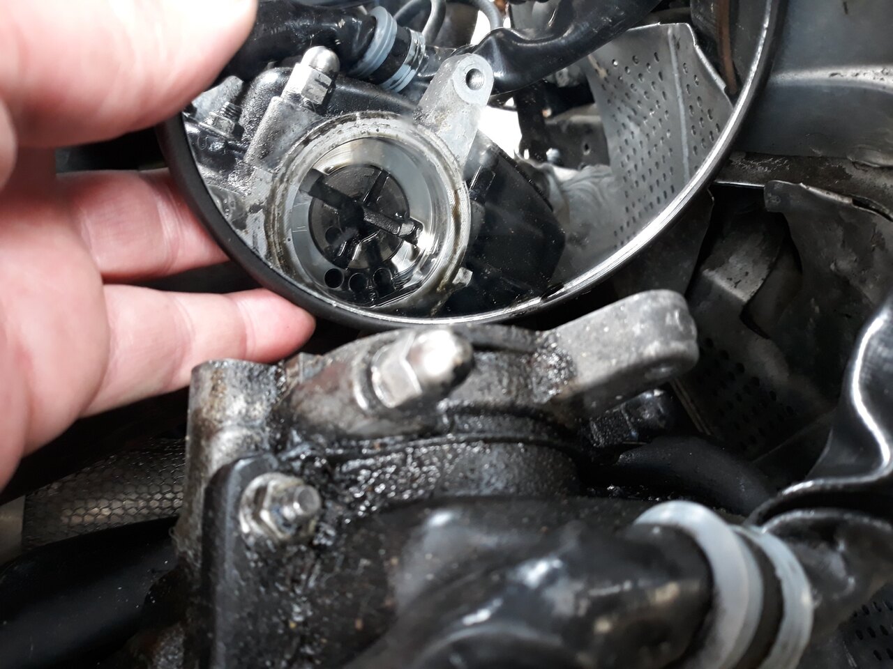 @le_yoyo_80 bin ya bien un fil mais sans connecteur.... il sort du boitier de controle de la PI pour aller direct à l'electrovanne. Et comme je suis pas trop pour ouvrir le couvercle du controleur de la PI... @frankr171 Merci pour le N° du fusible c'est bon à savoir !!! J'en ai pas eu besoin toutefois Bon pour faire court titine a demarré !!! Elle a eu du mal et j'ai encore failli allez au bout de la batterie mais elle est partie finalement J'ai fait comme j'avais fait avant, comme yoyo me l'a rappelé.... Soufflette à 5 bars ( pas plus car faut pas non plus exploser le reservoir ) dans la conduite où on fait le plein.... le GO est sorti de la durit d'arrivee.... Puis est sorti à droite du filtre, puis sur le banjo d'arrivee de la pompe..... Devissage des olives d'injecteurs pour laisser sortir les bulles.... Et apres avoir insisté un peu sur le demarreur, c'etait bon Elle broutait ( normal vu la qté d'air dans le circuit ) donc 1200 tours pendant 30 secondes et là le moteur est passé en mode horloge Je l'ai monté à température pour ouvrir le calorstat, 90° hop ! le vase se vide..... et le circuit se remplit tutti va bene !!!! J'ai bouclé pour aujourd'hui ( vu le temps qu'il fait d'ailleurs, c'est pas un temps à remonter une A6 ) Bon TOUTEFOIS j'ai un gros souci.... Au niveau du raccord plastique du filtre à GO. ( voir video ) 20250605 153833-1.mp4 Et je pense que m'a prise d'air qui m'a vidé le filtre vient de là... Donc deja demain avant de remonter quoi que ce soit, coup de clef et debullage du circuit ( bin oui la prise d'air est tjrs là et la voiture est toujours en pente... )... Puis remontage de ce qui reste ( pare-choc et bouclier et phares et pi voila ) Donc quelqu'un ici saurait-il me dire où trouver ce raccord en plastoc sur le filtre a GO sivouplé ? Belle fin d'apreme à tous et aux news -