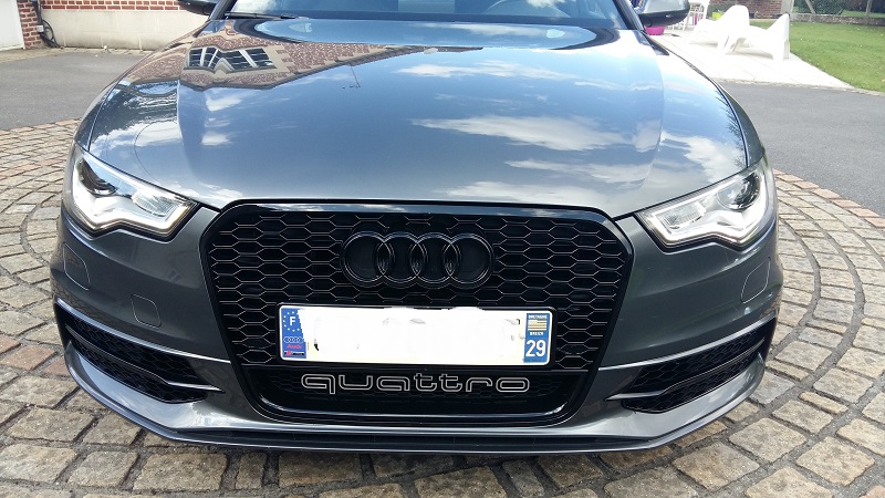 si je compte bien, les étriers de frein gris clair reviennent souvent Je vais faire un essai et vous me donnerez votre avis. Pour les cales, je vais donc opter pour le 15 !!! mais avez-vous une réponse sur le contrôle technique : avec des cales, ne risquent-ils pas de recaler la voiture ? cette semaine, je tente le démontage pour accéder à la console centrale et j'essayerai le débosselage. et enfin, apparemment, je suis comme beaucoup, le préfère les anneaux chromés sur la calandre : non seulement pour être synchro avec ceux de l'arrière et pour rester dans la teinte du sigle quattro du bas de la calandre : donc redémontage du PC, de la calandre...ou "bousillage" en règle façon bourrin, du sigle noir (je ne sait plus qui à arracher son sigle avec une pince coupante ! lol) directement sur la voiture et clipsage du sigle chromé que j'ai enlevé délicatement de ma calandre sline...a voir ! lol Quant à la valence...alors je vais attendre...et réfléchir a ce qu'on peut faire, entre la valence et les embouts d'échappement... -
