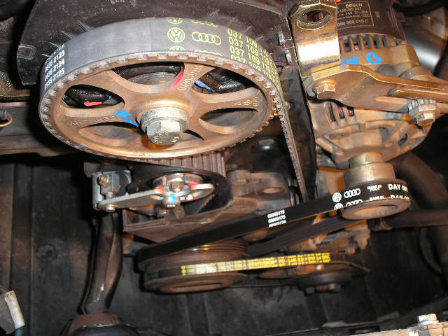 Merci Audi n°1 .J'ai fini ma distri .Ci joint photo avant remontage du bloc " ventilo" et du cache supérieur de courroie. A+. -