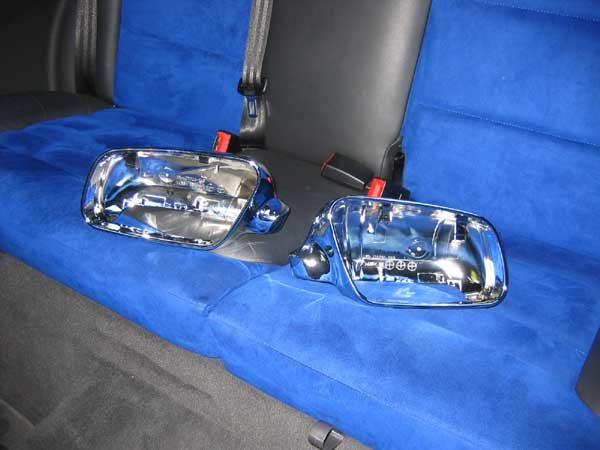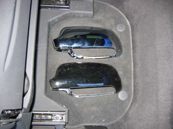 Alors voilà, j'ai commandé des coques de rétro chromées en abs. Je n'avais toujours pas de tofs, alors voilà le résultat avec une explication pour le montage. Temps, environs 1/4 d'heure. Tout d'abord, voici les coques (attention ça brille ): [attachmentid=8289] Voile le rétro d'origine, une dernière fois: [attachmentid=8290] Retirer le mirroir en tirant par l'angle extérieur, comme sur la photo: [attachmentid=8291] Dévisser les deux vis de la partie inférieure: [attachmentid=8292] Maintenant retirer la coque d'origine en la tirant vers le haut et en la faisant pivoter légèrement. Voilà à quoi ressemble un rétro sans coque, et ben c'est moche: [attachmentid=8293]
