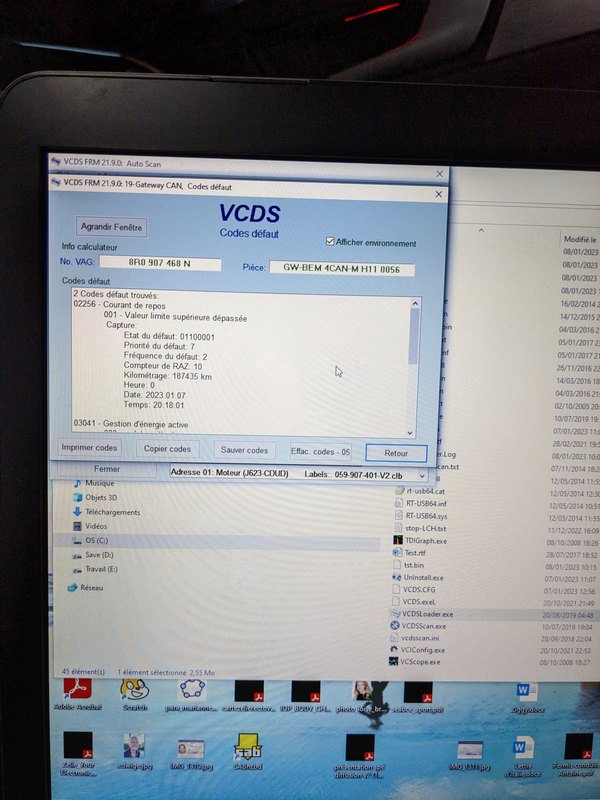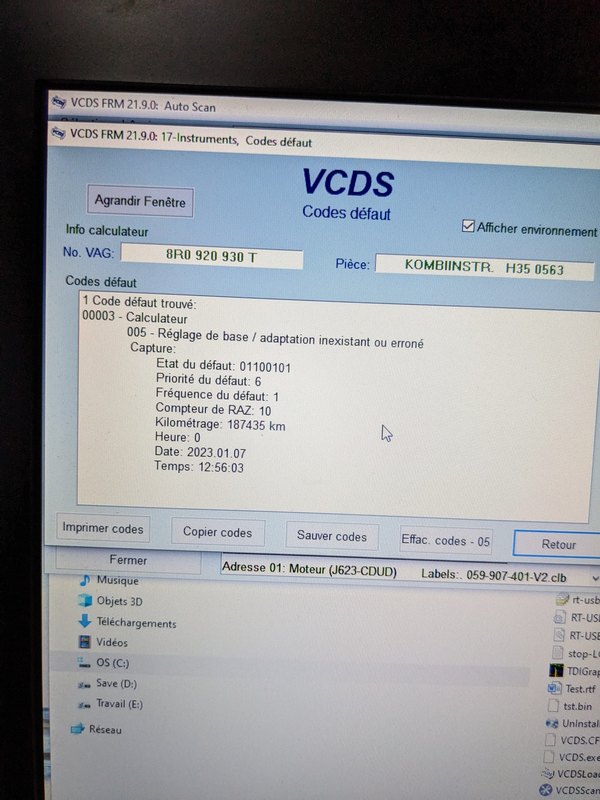 Hello Bon voilà depuis hier pb de bluetooth, ne trouve plus mon tel , se deconnecte, bref ca merdouille . Coup de VCDS et j'ai 2 defauts : (le 1er à mon avis rien à voir .... car le nuùero de piece c le compteur ...) Adresse 17: Instruments (J285) Labels:. 8R0-920-xxx-17.clb No. pièce Log: 8R0 920 930 T Mat: 8R0 920 930 T Pièce: KOMBIINSTR. H35 0563 Révision: 00300000 No. de série: WX850AP9E Codage: 038F220003010008030000 No. Atelier: WSC 06335 123 12345 VCID: 4581E413CCA1EFA136-8010 1 Code défaut trouvé: 00003 - Calculateur 005 - Réglage de base / adaptation inexistant ou erroné Capture: Etat du défaut: 01100101 Priorité du défaut: 6 Fréquence du défaut: 1 Compteur de RAZ: 10 Kilométrage: 187435 km Heure: 0 Date: 2023.01.07 Temps: 11:16:27 et dans le module BT 5F : (là par contre ..) Adresse 5F: Electr. d'informat. (J794) Labels:. 4E0-035-6xx-5F.clb No. pièce Log: 8R1 035 652 F Mat: 8R1 035 652 Pièce: B-BN-EU H62 0191 Révision: -------- No. de série: 148IA0D7658817 Codage: 010100060305E1FD05800F4E000000030000 No. Atelier: WSC 06335 123 12345 VCID: 366393DF81477439AF-8062 Sous-système 1 - No. pièce Log: 8T0 919 604 A Mat: 8T0 919 604 A Pièce: DU6 Basic H43 ---- No. de série: 9465I30D2672818 Sous-système 2 - No. pièce Log: 8T0 919 611 Mat: 8T0 919 611 Pièce: E0380 Bedient H01 0100 No. de série: 00000001623938 1 Code défaut trouvé: 03276 - Vérifier la gestion de version de logiciel 000 - - Capture: Etat du défaut: 01100000 Priorité du défaut: 6 Fréquence du défaut: 1 Compteur de RAZ: 10 Kilométrage: 187435 km Heure: 0 Date: 2023.01.07 Temps: 11:16:31 Capture: Tension: 12.10 V Vos avis , module BT HS , ca peut tomber en panne ce truc ? Par contre la ref 8R1 035 652 ....c'est le MMI complet ... J'ai effacé ts les defauts ...et rien n'est re apparu Merci de vos lumières BON WE PS : je n'ai rien fait du tout pour que cela arrive , par contre coïncidence ou pas c'était le lendemain d'un MAJ android de mon pixel 5 - J'ai testé avec d'autres téléphone IOS et Android , idem , pb connection /deconnection PS 2 : je viens de faire cette manip : ( au cas où) PS 3 : dans le module 15F adaptation 10, j'ai trouvé (je sais plus exactement ) cleau/reset all BT devices , j'ai mis la valeur à 1 qui était à0 , et oui via le MMI ca m'a tout supprimé PS 4 j'ai re apairé mon tel et ca fonctionne mais jusque quand ...