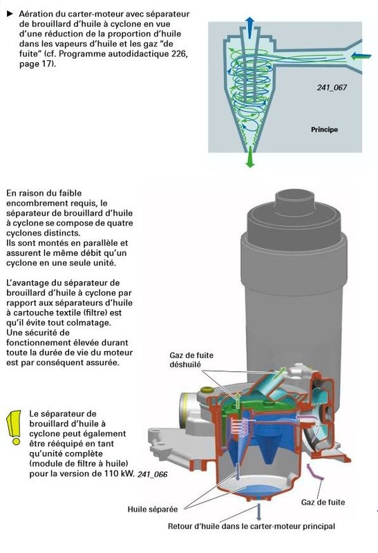 Je viens de trouver ce document qui présente des modifications apportée au v6 de la version 110kw vers la version 132 kw et notamment le filtre séparateur d'huile....dans le document à l'image il est dit : "Le séparateur de brouillard d'huile à cyclone peut également être rééquipé en tant qu'unité complète (module de filtre à huile) pour la version de 110kw)....qu'est ce à dire ? Merci !