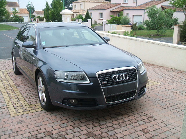 Bonjour à tous , C'est en communiquant avec Billeuz ce jour pour un probléme de GPS , que celui-ci m'a invité à mettre des photos de mon A6 Avant S LINE de 2006 . Donc chose faite , bien qu'inscrit sur le forum depuis un certain temps , je ne n'vais présenté mon auto . A6 AVANT S LINE de 2006 2.7 l avec DPF Bleu Nordic intérieur cuir volterra noir retro électrique et dégivrant,radio cd + chargeur, alarme , systéme audio dsp , décor int alu , 4 vitres électriques , siéges va sport et chauffant , suspension sport becquet de toit s line , toit ouvrant , feux xenon adaptatif, clim auto ,volant multifonctions ,gps mmi dvd couleur , laves phares , radar de recul av et ar,...etc 69000 kms modifs effectuée à ce jour passage en GPS 2010 , modification sortie pots échappements... A venir jantes ...