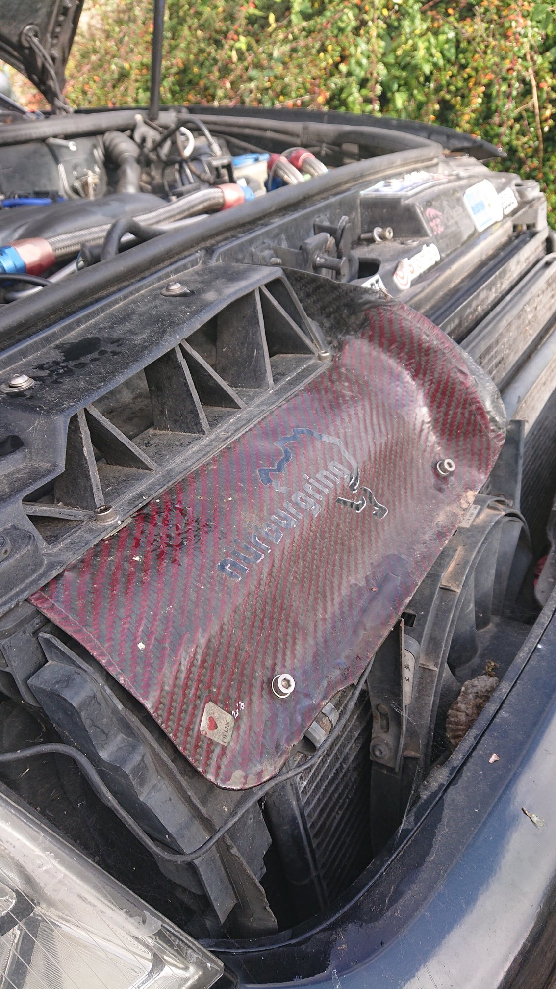La température est vraiment la clé de la puissance sur la S6 J'ai fait divers essais pour amener de l'air frais dans la boîte à air. J'ai notament explorer la voie suivie par ABBA en apportant de l'air da s l'entrée basse du filtre. J'ai installé un tuyau d'alu de 100mm entre l'antibrouillard (supprimé >grille en carbone). =>d'abord en condamnant l'entrée haute puis en la laissant J'ai testé les différentes configurations les unes après les autres, en mesurant la quantité d'air passant par le débitmètre à 100% de charge en 3ème Le meilleur résultat est obtenu 302 g/sec avec l'entrée haute et déflecteur contre 290 avec là grosse entrée basse. Pour mémoire une S6 stock, avale environ 260g dans les mêmes conditions. Si on considère que l'injection envoie la quantité d'essence nécessaire, la puissance devrait être proportionnelle à la quantité d'air absorbée... 302 g nous entraîne vers les 395 CV... Fabriquer le déflecteur par impression 3D est une idée intéressante. Cela dit j'ai encore le moule et il est en train de reprendre du service. Je peux en fabriquer quelques autres en fibre de carbone Filtre à air avec entrée basse -