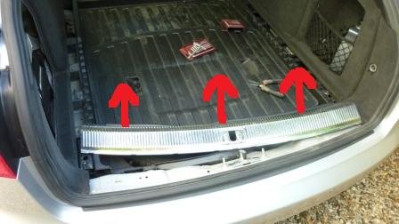 Retirer les vis clant le seuil de coffre Retirer le seuil de coffre Devisser la vis qui se trouver sous le support de maintien de la plage arrière Faire de meme à l'autre extermite de la plage arriere (a cote de la banquette arriere) Devisser le vis de maintien de la banquette -