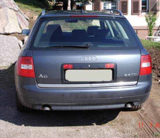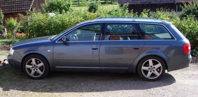 - membre : fredosfr - année de fabrication : 2004 - voiture achetée neuve / d'occasion : occasion - modèle : A6 - moteur : 2.5 TDI 180cv - préparation moteur : - - berline / avant / cabrio,road : Avant - version (ambiente, ambition, pack plus,...) : - boîte manuelle / automatique / DSG : Manuelle - traction / quattro : Quattro - couleur extérieure : Gris Dauphin - couleur intérieure : Noir - finition intérieure (tissu, cuir, cuir/alcantara,...): cuir/alcantara - jantes (taille / dénomination): 17" Etoile 5 branches - 16" en hiver 10branches - pneus (fabricant / modèle): Continental SC2 - Dunlop WSM3 - châssis modifié : - freins modifiés : - options / divers : Chassis sport - Bi-xénon - Aide au stationnement - GPS 16/9ème avec DVD et MMI - Toit Ouvrant électrique - Rétros rabattables - Régulateur de vitesse - kit mains libres dans l'accoudoir - sièges chauffants - -