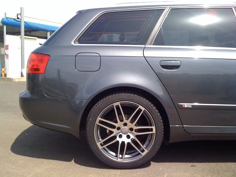 Dans les jours qui ont suivis, je n'ai pas pu m'empêcher d'y apporter quelques modifs.... Dans l'ordre: - vitres teintées Carbone Medium chez Glastint - Jantes RS4 dolphin grey polished - Coques de rétroviseur effet alu - Petites reprogrammation en 177 cv - et là je suis dans l'attente de feux avant A4 B8 xénon look et arrières look A6 ALLROAD full diodes. - J'envisage également la pose de ressorts de B7 s-line chassis sport qui devraient me faire descendre de 3 cm... Voici quelques photos, n'hésitez pas à me faire part de vos appréciacions. Bonne route à Tous. -