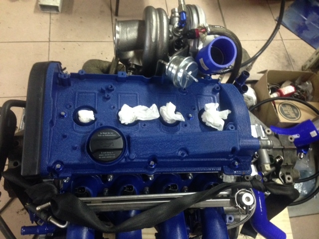 Bon un peu de nouvelles, boite et embrayage en place. Distribution calée impeccable. Me manque les raccord huile et eau pour le turbo, faire le downpipe sur mesure, et plein de petites bricoles qui prennent un temps fou lol -