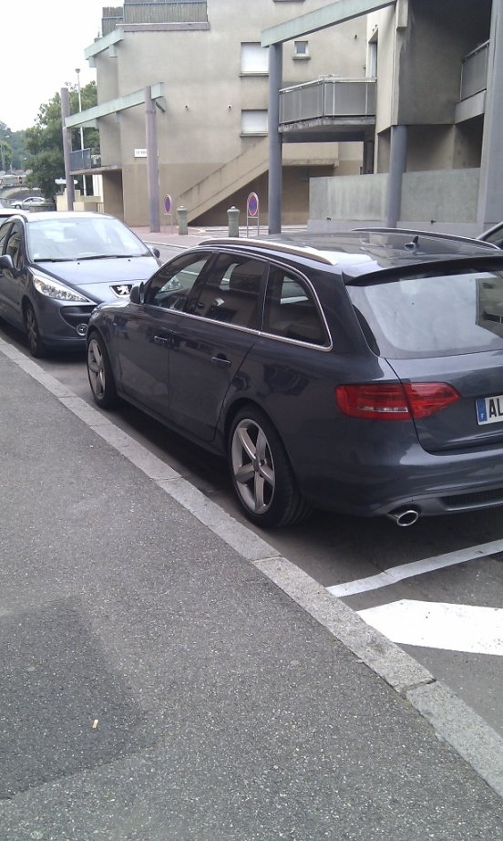 Bonsoir, votre avis m'interesse J'ai une A4 B8 S-Line équipé de Jantes 19" 7 branches étoilées type RS4 taillé 255/35/ZR19 d'origine. J'ai décidé de passer sur des jantes Audi S-Line 18" 5 branches 245/40/R18, car déjà je les préfèrent, ça coute moins cher en pneu car je roule bcp, et je compte me payer des pneus hiver en plus à cause du foutu sale temps qui règne ici .... J'en ai acheté à un particulier à un bon prix, des vraies Audi, pas des réplica. Je viens de les faire monter aujourd'hui, mais à ma grande surprise, et alors que les pneus sont moins larges, je trouve que les pneus dépassent, et j'arrête pas d'avoir une fixation sur ça, je déteste les gros beaufs qui ont des pneus surdimensionnés qui débordent... Il est vrai que les pneus Michelin 18" ont une une énorme protection de bord de jantes qui donne un aspect "bombé" au pneu... Bref, que pensez vous des miennes, existe t'il un réglage à faire.