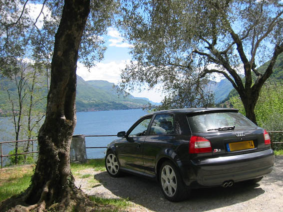 Et voilà mon nouveau joujou depuis 2 mois... Comme promis dans le post du recensement des S3, j'apporte les photos de mon S3: S3 noir evo, 03/2001, 93000 kms, cuir noir/alcantara blanc, prépa 240 Ch (faite par l'ancien propriétaire - reprogrammation du calculateur) toutes les options qui vont bien (radar de recul, xénon, bose, régulateur...)... Bref, heureux!! La belle a fait son premier voyage dans le nord de l'Italie (autour des lacs, comme on le devine sur les photos!). Et a pris 2000 kms au compteur en 3 jours... Maintenant que j'ai mis les photos, me voilà membre??