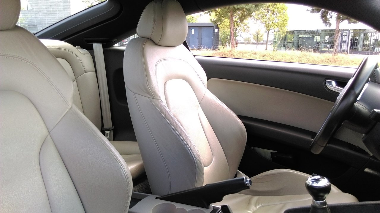 Bonsoir à tous, après avoir passé presque 2 ans sans voiture j'ai profité d'un déménagement récent pour me racheter un véhicule. Je vous présente donc mon nouveau véhicule : Audi TT mk2 Coupe 2.0 TFSI de Mai 2007 100.000 km Noir phantome nacrée (LZ9Y) intérieur cuir Gris lumière (TH) (enfin je crois que c gris lumière) Comme option d'origine elle a : Xénon Bose Intérieur alu Jante en 19 audi RS4 (pas d'origine selon la fiche) et c'est tout ! La voiture est en bon état pour 13 ans mais il y'a tout de même quelques petites choses à faire. Le cuir n'est pas trop plissé, mais très sale. la carrosserie est micro rayé et il y'a quelques rayures plus profondes (mais globalement ca va) 1 ampoule Xenon à changer (commandée) Tour de calandre à changer (cassé à un endroit) ou changement de calandre (a voir) Sortie d'échappement à nettoyer ou changer (car elle est bien attaquée et a été mal fixée. elle ressort trop)) Support de plage arrière a recoller : Fait Enlever un microphone disgracieux : Fait Ampoule de plafonnier conducteur a changer ou plafonnier (dépend si c un faux contact ou autre) : Fait (faux contact) Ampoule de boite a gant a remplacer Nettoyage du cuir à faire (g fait un premier passage mais il va falloir y aller profondément) Detailling à faire (et reprise des rayures) Globalement la voiture va rester stock pour le moment. on verra avec le temps et les envies. Mon objectif : la garder le plus longtemps possible (a vie qui sais) Place à quelques photos rapides. (1 avec la moto en arrière plan)